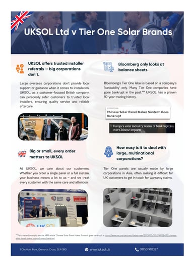 UKSOL offers high-quality solar modules engineered to strict British standards. Known for their efficiency, durability, and a written 30-year warranty, UKSOL products are a trusted choice for sustainable energy projects worldwide.Powered by trust. Backed by a 30-year British warranty.