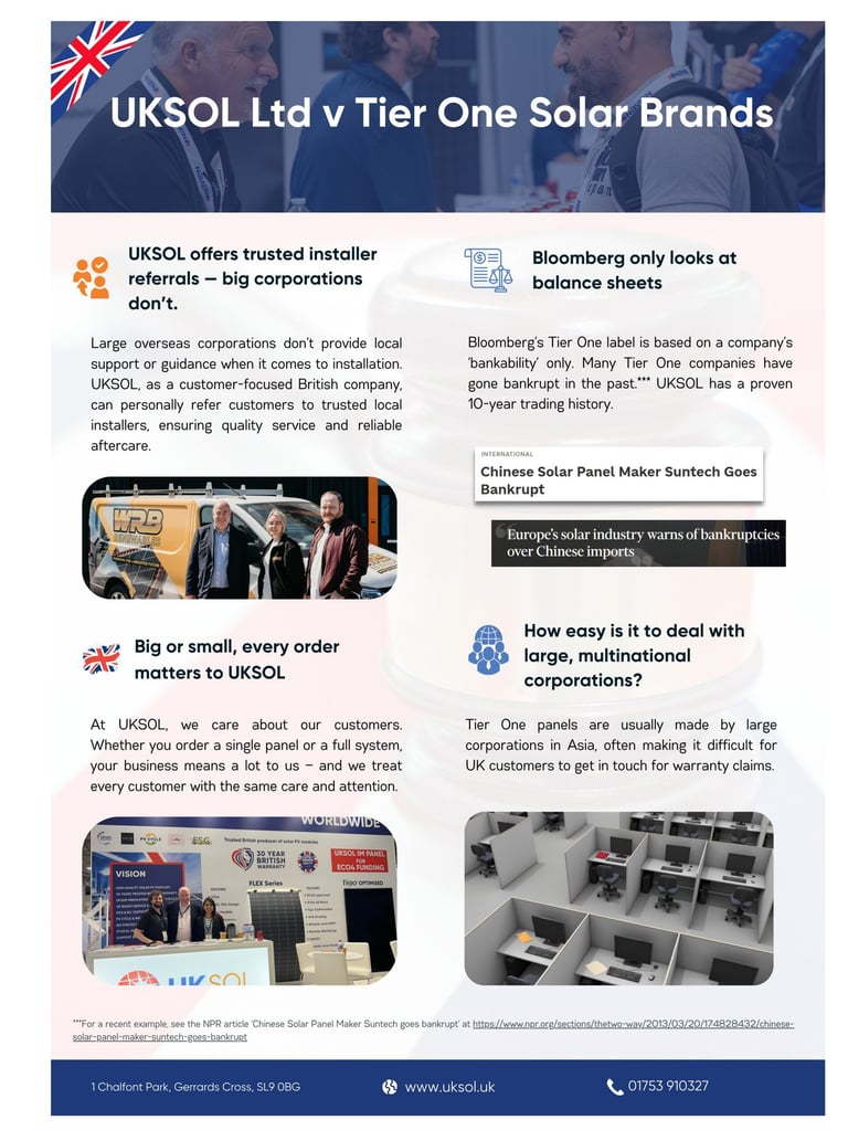 UKSOL Ltd, established in 2015 and based in Gerrards Cross, Buckinghamshire, is the leading British brand of high-quality solar PV modules, embodying British values of integrity, innovation, and responsibility through its strict ethical procurement policy, commitment to responsible sourcing, and global reach—supplying solar panels to 50+ countries worldwide.