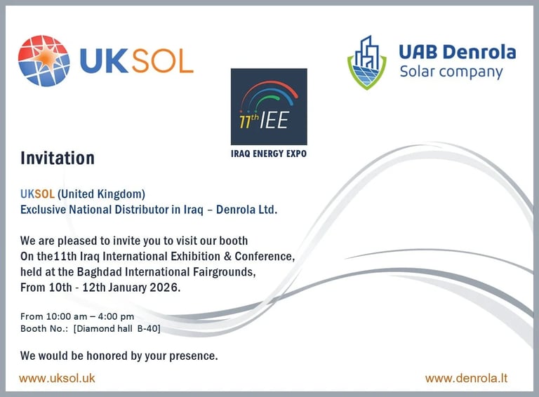 Denrola delivers trusted, high-quality solar energy solutions across Iraq as the exclusive distributor of UKSOL solar panels, empowering homes and businesses with reliable and sustainable power.