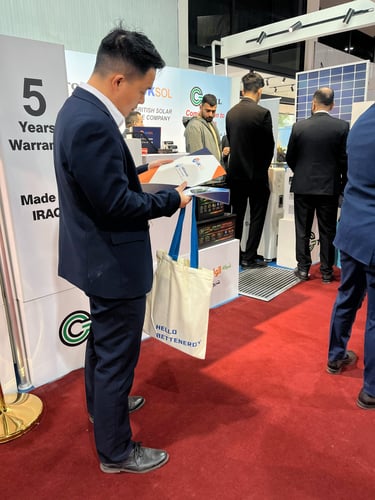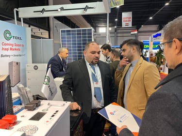 يمكنكم زيارتنا في قاعة Diamond Hall، الجناح رقم B-40، في أرض معرض بغداد الدولي، حيث يسعدنا استقبالكم والتحدث معكم حول كل ما يخص حلول الطاقة الشمسية.
